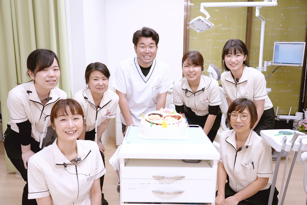 私個人としては、当院を歯科衛生士が主役の医院にしたいと考えています。開業してから10年がたちますが、オープニング当時のスタッフが今も勤務しています。産休・育休の実績が6回あり、復帰率は100%であることからも、スタッフ同士の人間関係や居心地の良さが伝わるのではないでしょうか。これまでにスタッフ間のトラブルはありませんので、あなたもきっとすぐに馴染んでいただけると思います。